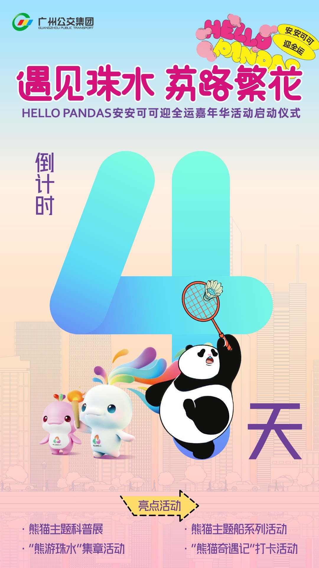 活动亮点:网红博主“李萌兰-么么儿”将来到白鹅潭艺术中心码头服务中心开设集章活动,传递对熊猫与十五运会的热爱。